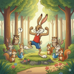 Once upon a time, in a green forest, there lived a fast, proud hare who loved boasting about his speed.