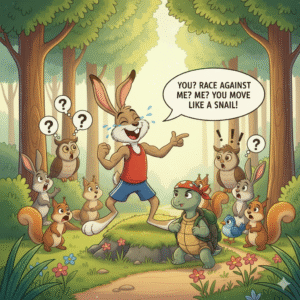 “No one in this forest can run faster than me! I’m unbeatable!”